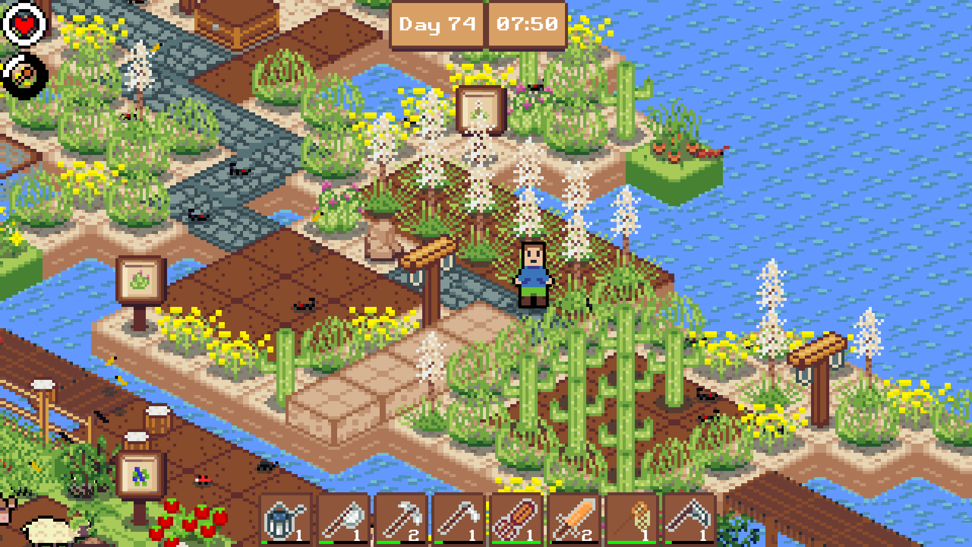 Develop your island over time by placing blocks in the ocean to make land. Items appear randomly for you to harvest. Gather resources and make new structures. Plant fields, cook food, advance your technology! Create a bustling island that evolves over time. Just place blocks to see how far you can go!
